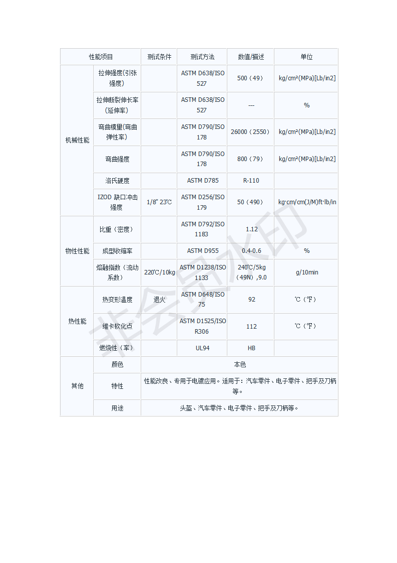 汽車內(nèi)外飾:儀表板,飾柱,儀表前蓋,格柵,內(nèi)外飾件 2.商務(wù)設(shè)備機(jī)殼和內(nèi)置部件:筆記本/臺(tái)式電腦,復(fù)印機(jī),打印機(jī),繪圖儀,顯示器 3.電信,移動(dòng)電話外殼,附件以及智能卡(SIM卡):  4.電器產(chǎn)品,電子產(chǎn)品外殼,電表罩和殼體,家用開(kāi)關(guān),插頭和插座,電纜電線管道 5.家用電器,如洗衣機(jī),吹風(fēng)機(jī),微波爐內(nèi)外部件等。6.頭盔
